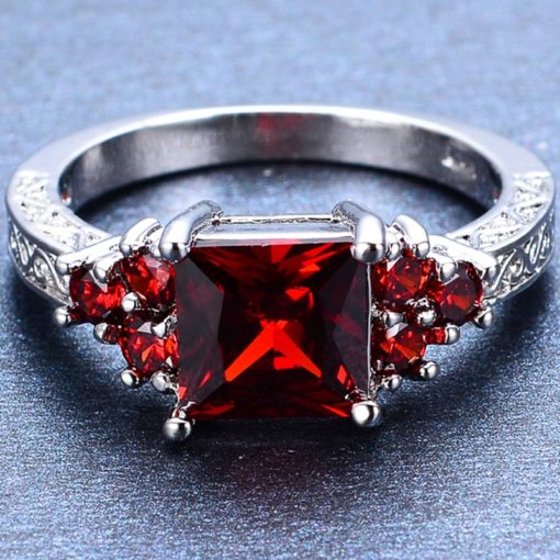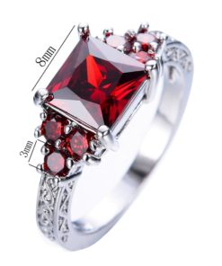 This elegant and classy ring is accented with ruby cubic zirconia. The July birthstone, ruby, is associated with: