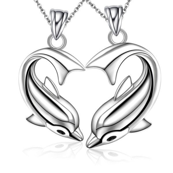 Each set comes with two necklaces carrying titanium dolphin pendants. The dolphins can come as either rose-gold or black or two silver dolphins.